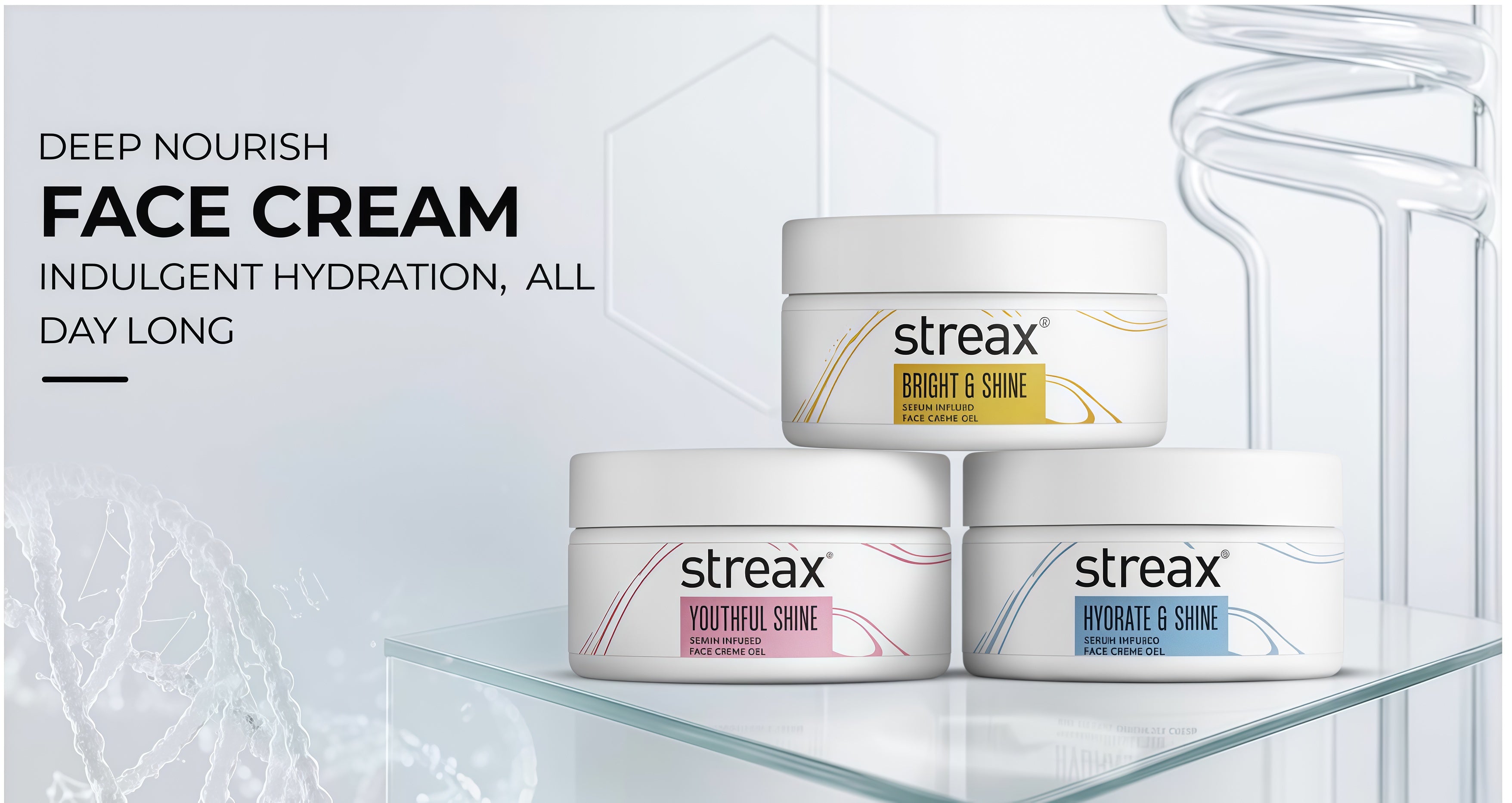 Streax Hydrate & Shine Glow Duo – Hyaluronic Acid Serum (30ml) + Glutathione Face Cream Gel (50g)